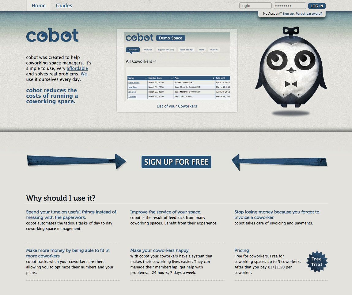 When we first began developing Cobot in 2009, it was intended as a tool for our coworking space, co.up. And when we first began offering it to other spaces in 2010, it was just our founders’ side project to help manage that coworking space.