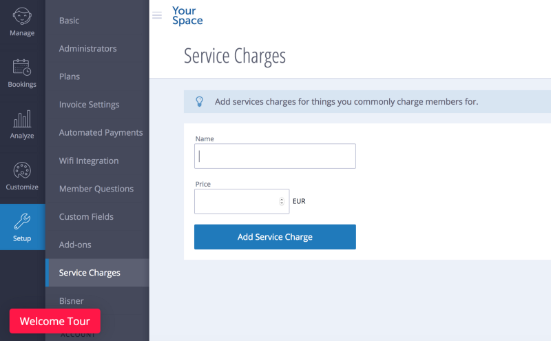 Now we’ve set up a second path to adding Service Charges under Setup > Service Charges.
