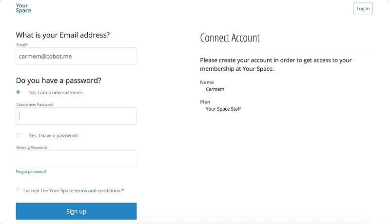 This time-saving improvement is designed to make it even easier for members to sign up to your space. We cleared out some of the input fields and improved the copy to make the process very straightforward. Now when you send an invitation to a member to connect them to Cobot, members get a single step sign-up form and that’s it.
