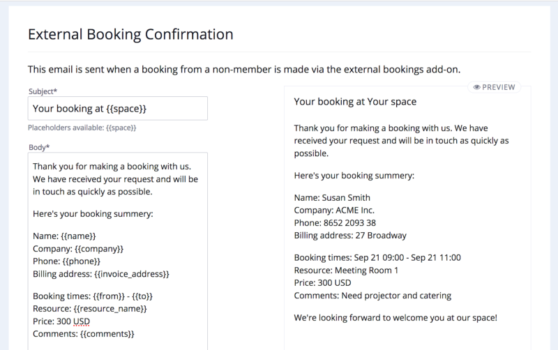 We released a feature that allows to customize and send out automated confirmation emails when you get external bookings. This way you can not only confirm that you’ve received their reservation but also inform non-members about any particulars regarding your space and other relevant information. You can read more about our External Bookings add-on here.