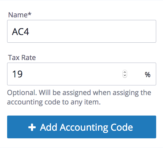 You can now set tax rates for each individual accounting codes. This means that when you assign the accounting code to any item (Plans, Resources, Service Charges etc.), the tax rate is automatically calculated as well.