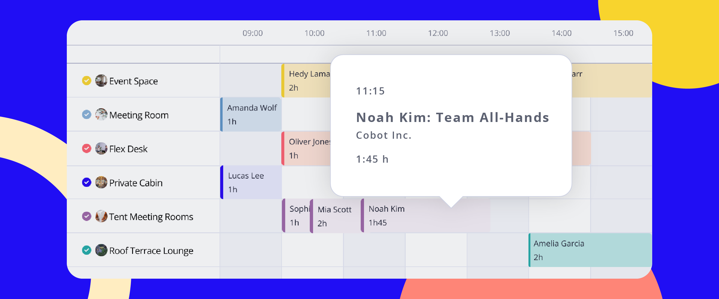 When you hover over a booking anywhere in the calendar or timeline, you'll now get a detailed preview of the booking, including time, resource, name, title, and duration.