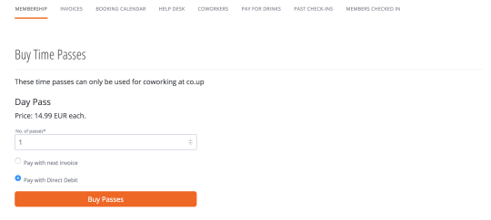 And here’s one more frequently requested update. Before, whenever members would buy a time pass or booking pass and chose to pay it right away it would go on to their next invoice. This confused many people — managers, members and consequently, us. Now it’s all automated to be invoiced and charged immediately.