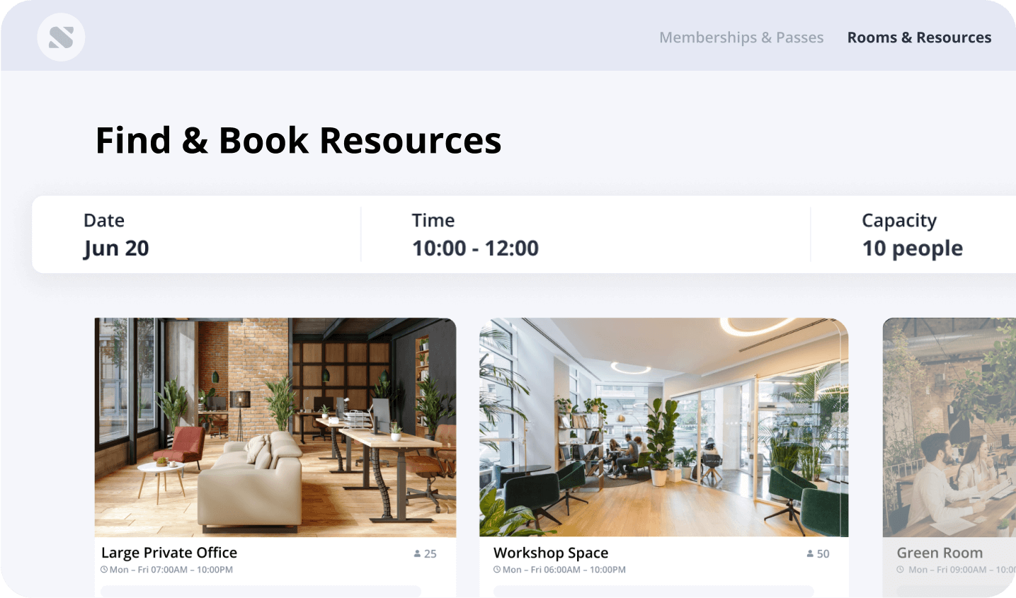 Your external page for rooms and resources now has filters for date, time, duration, capacity, and categories. This makes it easier for visitors to find and book the rooms they need. When filters are applied, resources are clearly marked as available or unavailable. The checkout flow automatically includes the selected date and time.