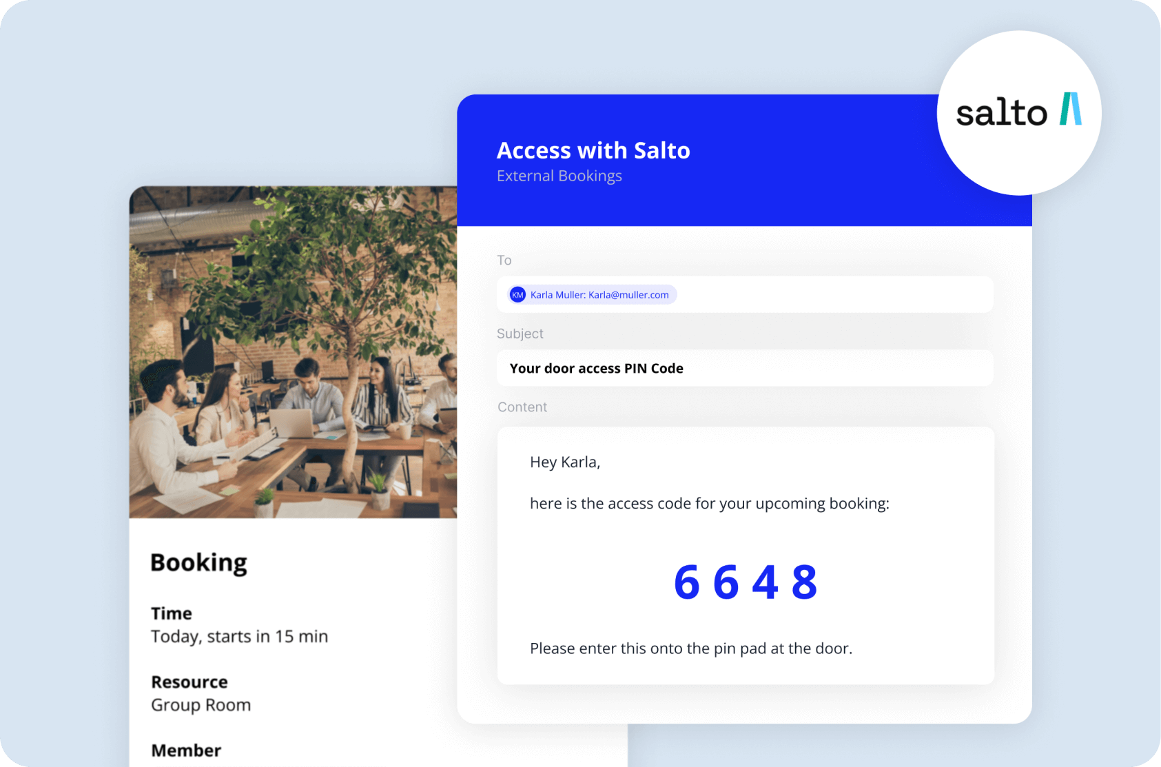Automatically grant external visitors access with Salto: You can now enable external booking support for your Salto system. Visitors receive access to their booked room shortly before their reservation begins.