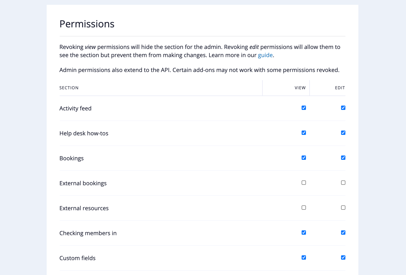 Individually manage your team’s permissions in Cobot. You can choose to allow only viewing or both viewing and editing access per admin.