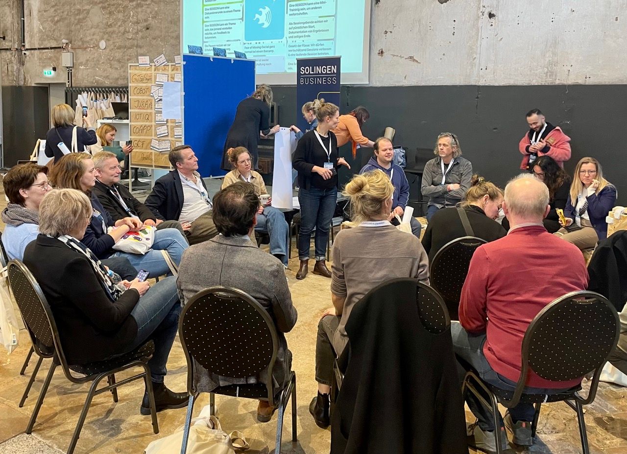 The second day took us to Coworkit in Solingen, a coworking space in the shell of a former factory. As a memory of the industrial past, this made it the perfect venue for the Barcamp sessions about new work and the future of work. We are always overwhelmed by how many participants volunteer to suggest topics, so the day was quickly filled with more tracks than anticipated, but moderators Doris Schuppe and Beate Mader handled it like pros.
