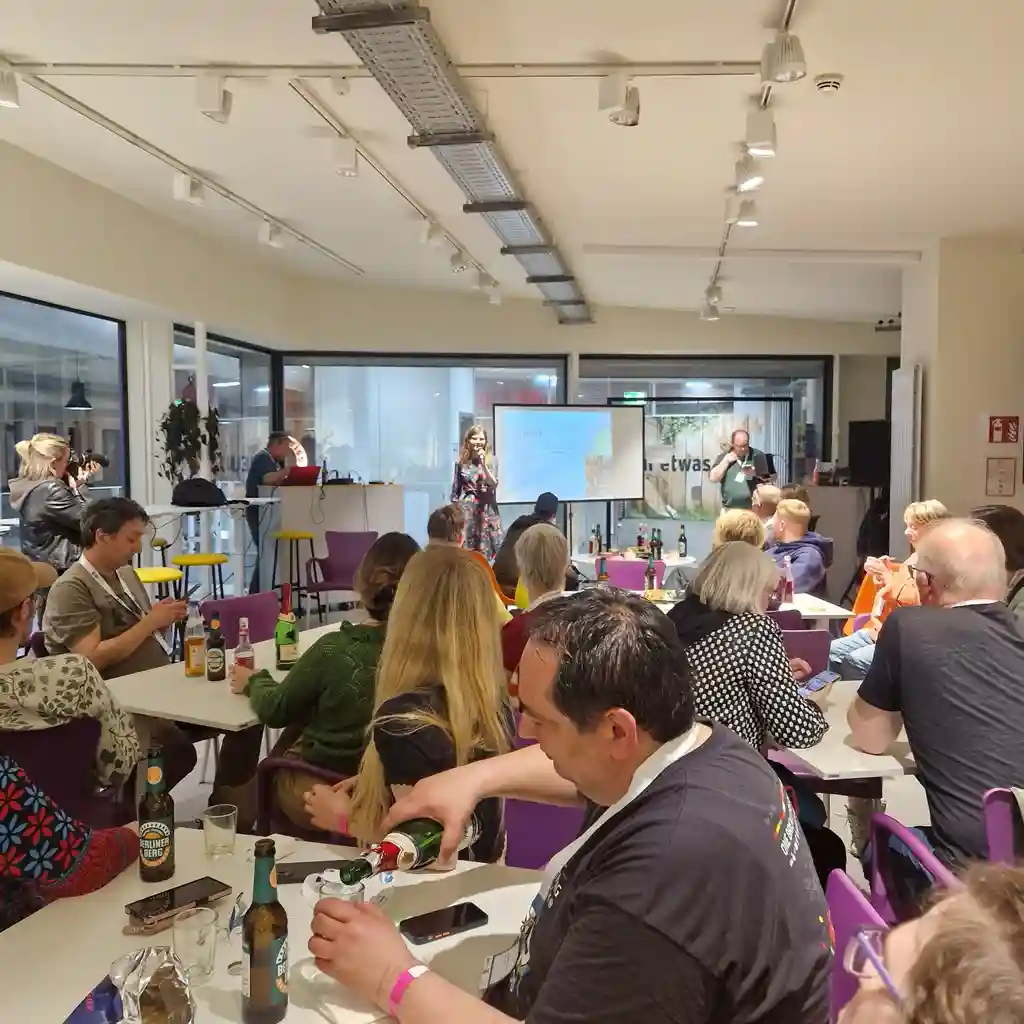 After the sessions, we moved to COCO - Coworking & Community, located in a market hall in the heart of Berlin, Kreuzberg. This lovely new space, which is also a Cobot customer 🤓, hosted the yearly Coworking Quiz: