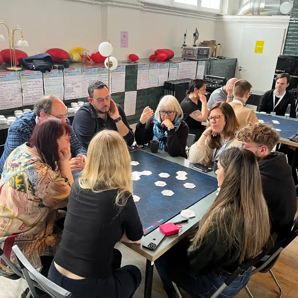 After a couple of welcome sessions from Silke Roggermann 🎤,Staatssekretär Michael Biel, and Birgit Steindorf, we jumped into the Keynote session by Leonie Müller 🚐, who explored how we can improve our coworking by taking a minute to arrive before meetings, as well as exploring the 4 Player Model, Team-Phases by Tuckman, and physical zonations of coworking spaces (and camping sites 🤓)