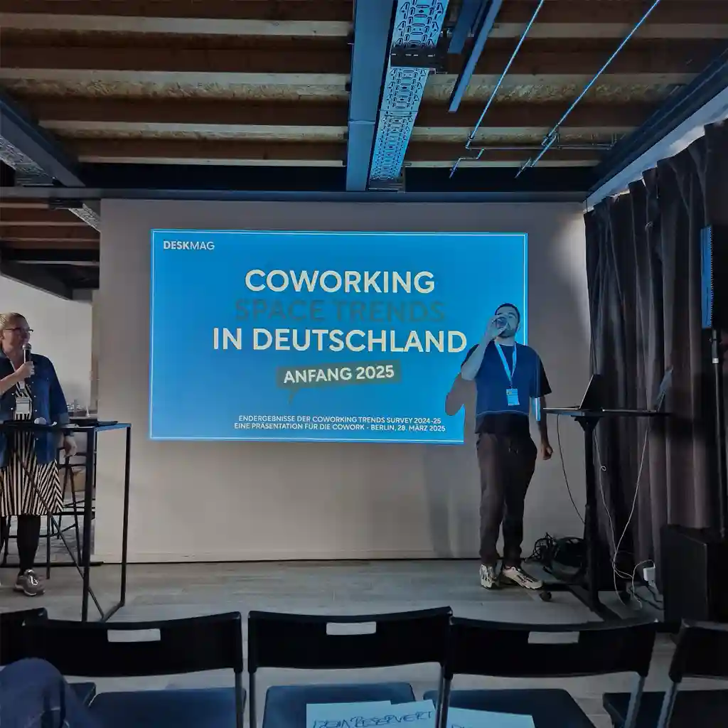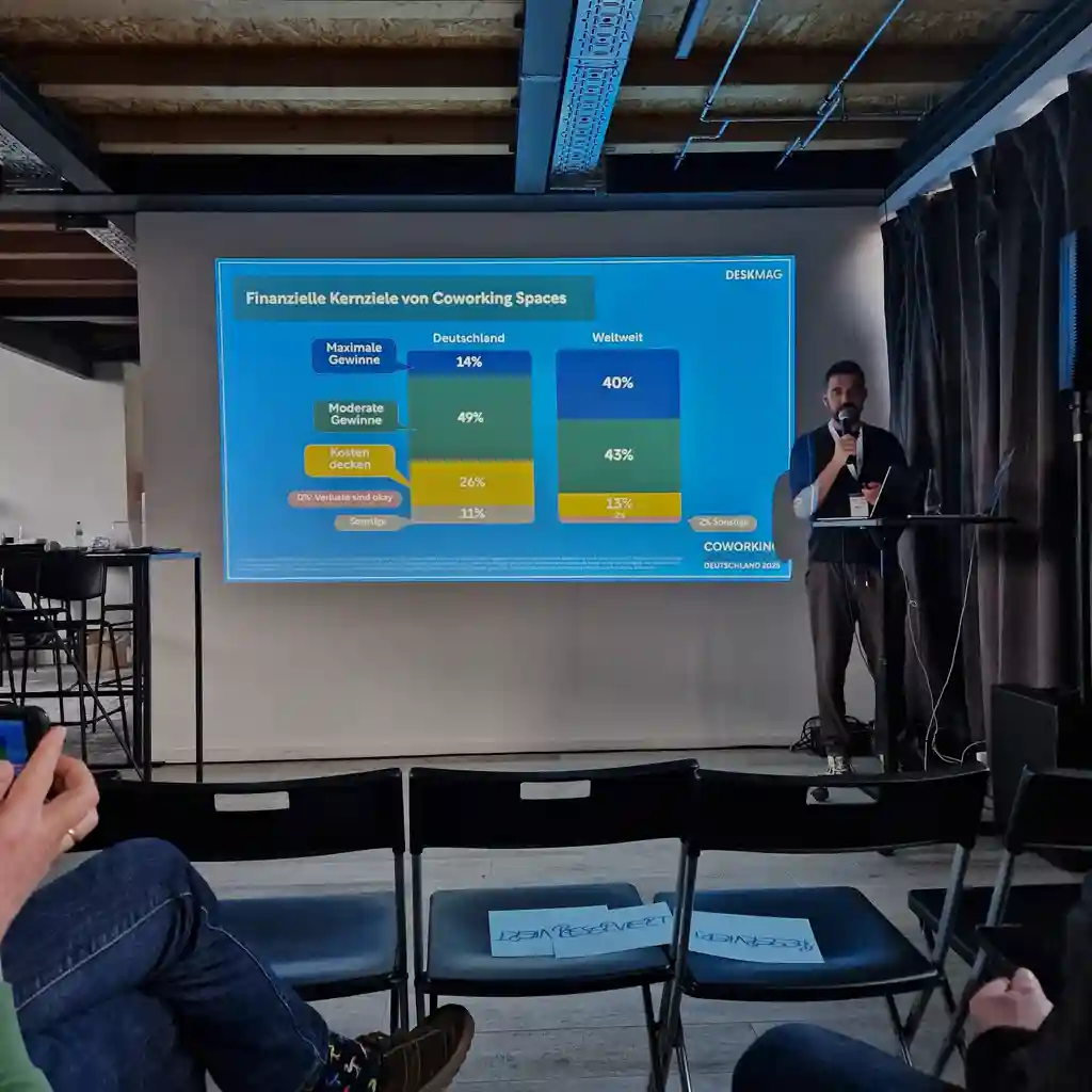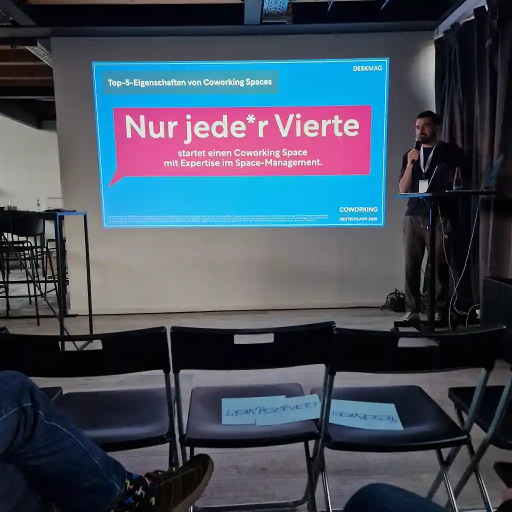 Following that, Carsten from Deskmag took the stage and presented us with his newest coworking statistics and numbers. In short, his numbers reflected an increase of trust in the future and continuous COVID recovery in German and European coworking spaces.