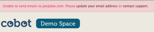 If you still manage to smuggle your typo past the signup form and we notice the problem, cobot will now display a red bar at the top of every page, notifying you that there’s an issue to take care of, before any important emails are lost.
