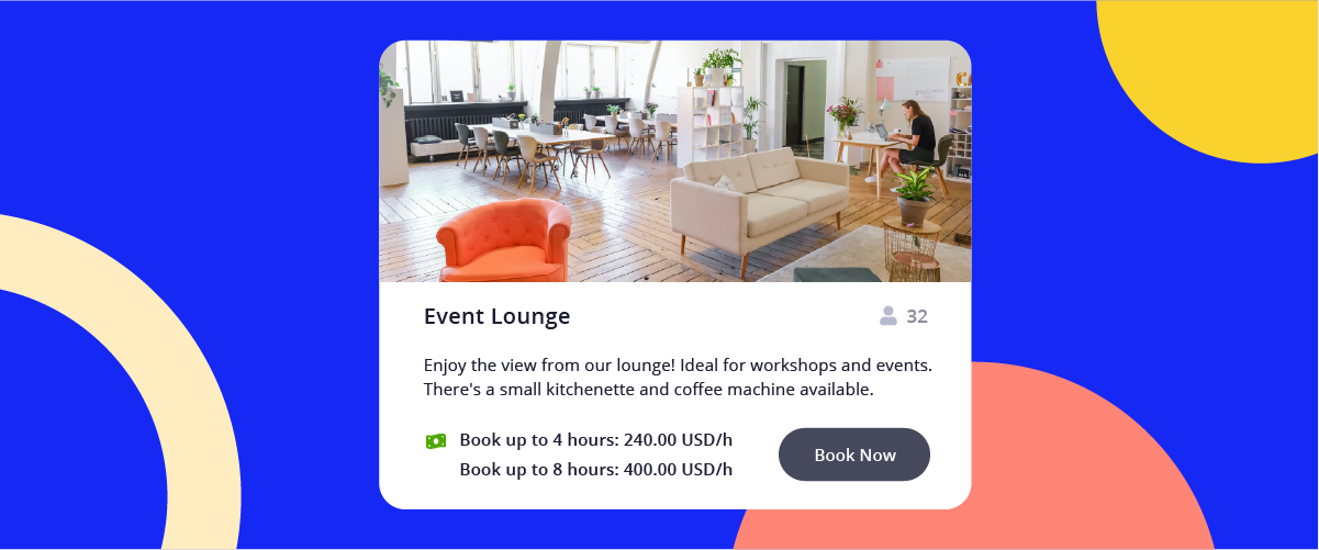 Why is this such a big deal? Well, it means that coworking spaces can now offer meeting rooms at half-day and full-day rates. When not using fixed rates, booking are still priced hourly, and admins can make this even more attractive by setting up discounts for longer bookings, or set a price cap on very long bookings.