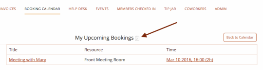For years we have had the ability as an administrator to download a calendar feed of all the bookings going on in your space — or resource by resource. (Admin Area > Manage > Booking Calendar > Click the Calendar Icon next to Booking Calendar)