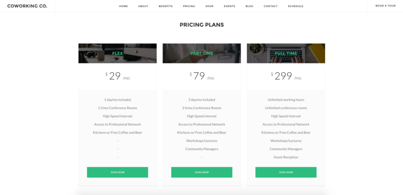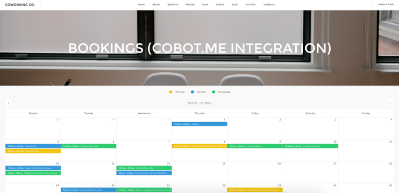The Calendarius plugin allows you to embed your Cobot Calendar into any page of your WordPress website and make it completely public, even to non-members. The same works for your plans. You can have them nicely displayed wherever you want, like, on your landing page, for example.