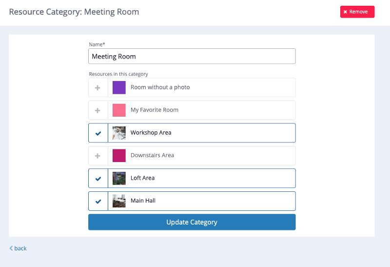 Adding resources to a category now includes images of the resource and it’s easier to select the exact resources you want included. It’s a small, but useful, change to the interface. As your space grows and your options grow, good organization will keep your operations running smoothly.