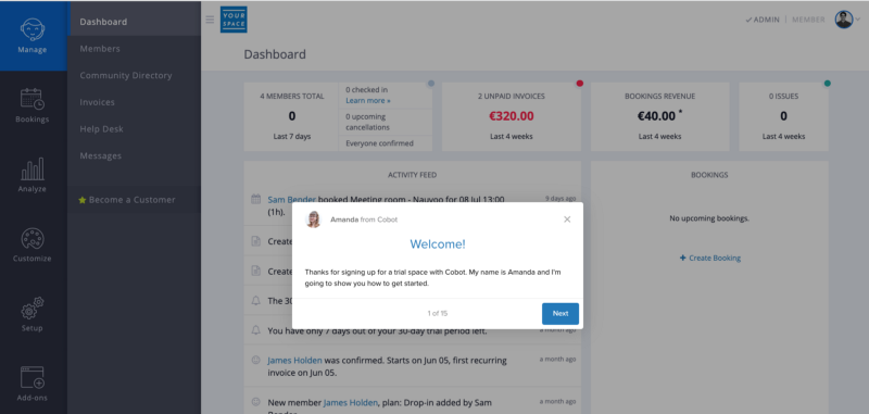 If you aren’t already using Cobot as your coworking management software, give it a go! You’ll find that our features can help you run your coworking space more effectively and grow your community. Just sign up for a free trial or a live demo session. And if you have questions, our support team is all ears!