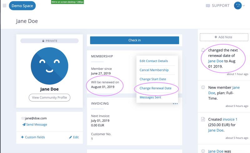 For user clarity, we’ve renamed Invoice Date to Renewal Date and moved it to the membership section. It’s been, and continues to be, a useful existing feature. But we found that the original name and placement was causing confusion among our users; it more accurately changes the renewal date, not the invoice date, as members can still be invoiced before the newly-selected date for other services.