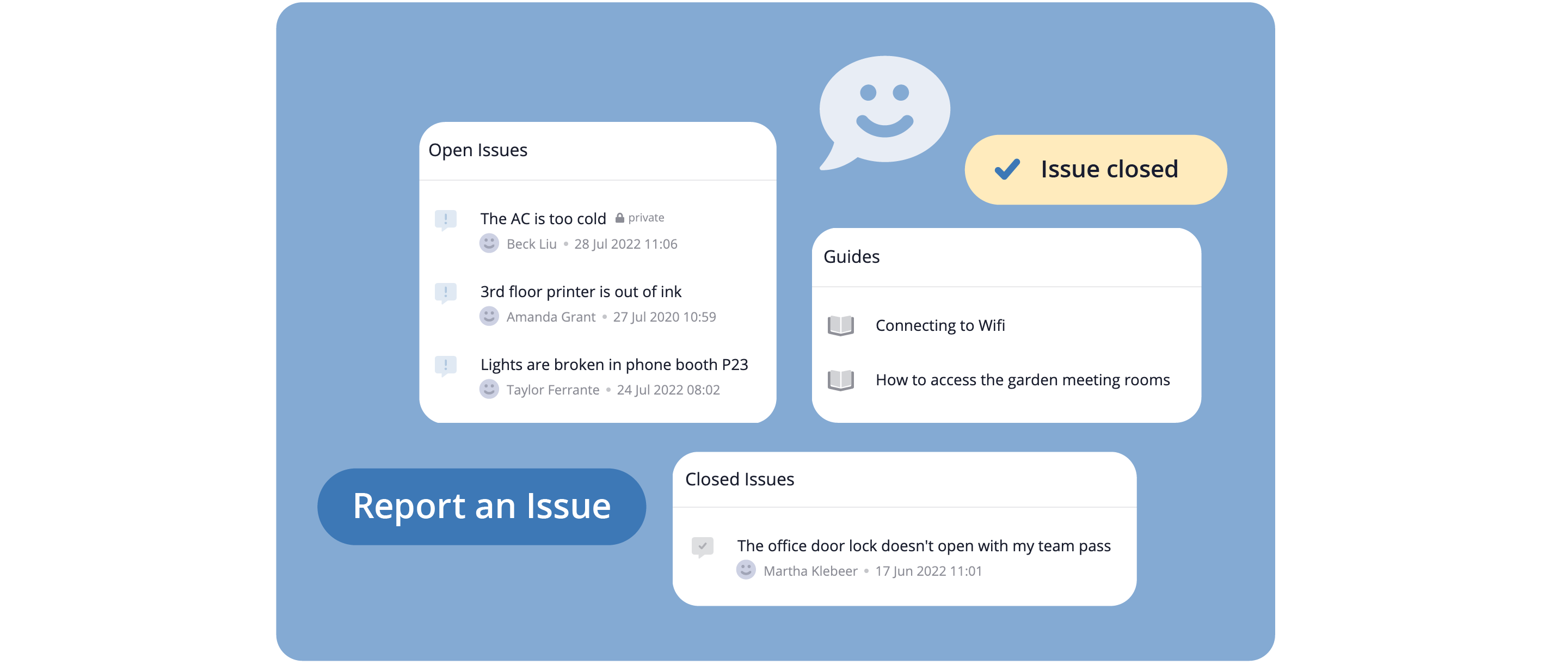 The help desk is where you can share guides to your space, amenities, and community, and where your team or members can report issues and exchange messages and comments to resolve them.