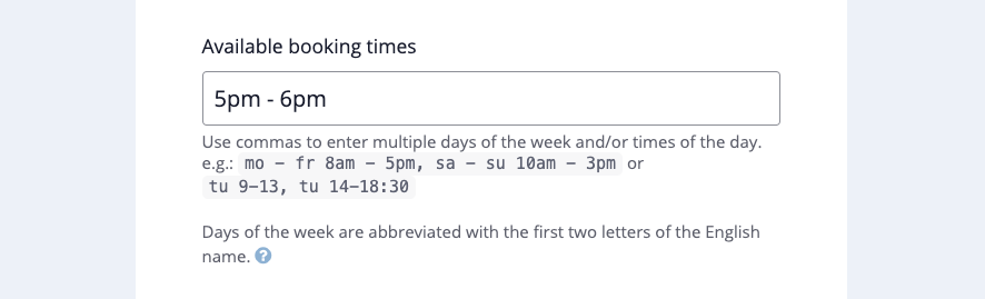 Managing resources doesn’t need to be complicated—but sometimes, it does need to be detailed. To help make this process detailed, clear, and straightforward to use, we’ve clarified the many ways you can define available booking times. You can separate days of the week and times of the day, all using the 12 or 24 hour system.