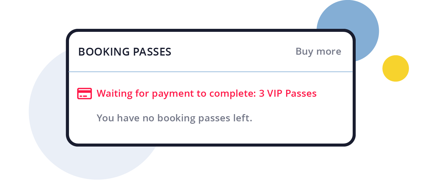 Members confused when their freshly-selected Prepaid Booking Passes weren’t immediately visible on their dashboard after a purchase? Now members will see pending payments, and learn exactly what will be available once the payment is processed.