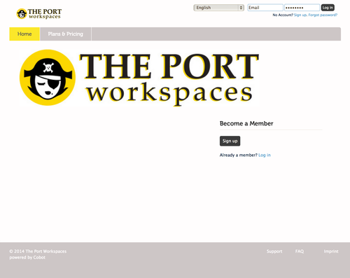 To make the white-label package complete your members can access Cobot from your own domain, so instead of having to go to co-up.cobot.me (our own coworking space) they can visit members.co-up.de.