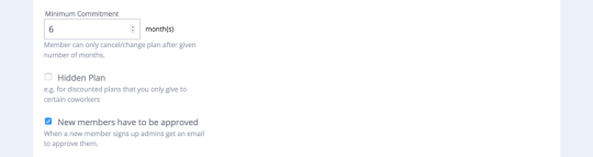 Plans now have a “minimum commitment” field. If you fill this out as an admin, members will have to stay on that plan for at least x months. (i.e. you can give long-term members a discount)
