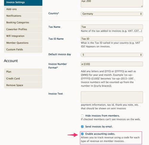 You can activate accounting codes with just a click by going to Setup and then Invoice Settings. At the bottom of the page you will find a checkbox labelled “Enable accounting codes.”