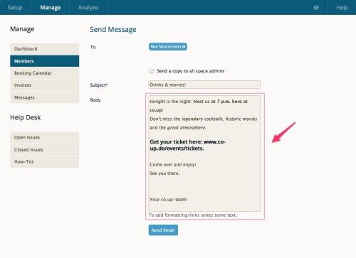 Cobot now makes it possible to individualize your emails with some basic formatting. Create some brand recognition and adjust your text to fit your overall appearance. To connect your content or platforms more efficiently, you can add links as well. Just have a try! For example, this is a great way to remind your coworkers of an upcoming community event.