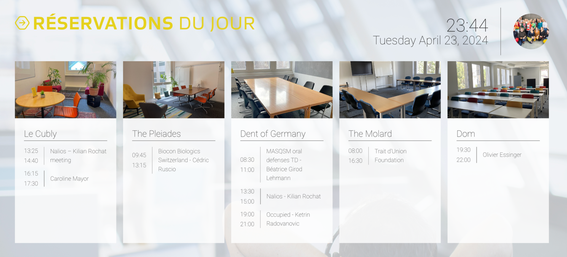 - Resource Bookings: Real-time updates on room availability and meetings happening, helping everyone make the most of the workspace.
