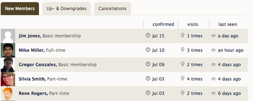 What percentage of your users have monthly subscriptions and how many day-pass users are there? Are members sticking to their initial plan, or are they upgrading, downgrading or even deleting their membership? Might there be any cause for concern in that respect? Are new members as active as you would expect them to be?